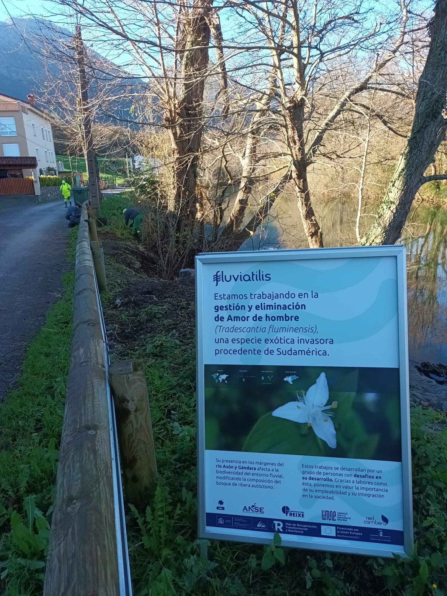 Durant aquests mesos de l’hivern que deixem enrere, hem visitat les parcel·les a la vora del riu Asón a Brancs de la Victòria on l’associació Amica ha estat treballant per eliminar dues grans poblacions d’amor d’home. Durant els mesos de desembre dels anys 2023 i 2024 s’han eliminat aquestes poblacions, amb molt bons resultats. Per ajudar a restaurar l’entorn fluvial, que ha quedat nu després de l’eliminació d’aquesta espècie entapissant, s’ha procedit a sembrar i plantar arbres i arbustos autòctons.